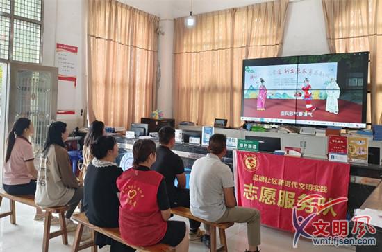 呂塘社區新時代文明實踐站則以鄉音傳鄉韻,用閩南薌劇說唱視頻傳遞文明新風。“老人在世多盡孝”“火葬簡辦去迷信”等朗朗上口的唱詞,搭配傳統薌劇的明快節奏,將移風易俗理念融入本土文化肌理。社區居民跟著旋律輕聲哼唱:“這樣的宣傳聽得懂、記得住,比講道理更入腦。”不少居民也紛紛點贊,認為這種方式既保留了閩南文化特色,又讓文明理念變得“接地氣”。