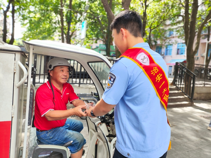 警察學院志愿者為快遞員送清涼。五鳳街道 供圖
