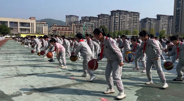 鯉魚山小學的籃球操則是另一番景象:動感音樂里,籃球在孩子們手中翻飛如蝶,小小的身軀隨著節奏騰躍,汗水折射出陽光的弧度。第二實驗小學的韻律操、苔菉中心小學的廣播體操,同樣以整齊劃一的動作,讓肢體在律動中舒展,讓活力沖破教室的邊界。