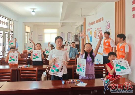 孩子們在環(huán)保袋上繪制“移風易俗”。翔安區(qū)委文明辦 供圖