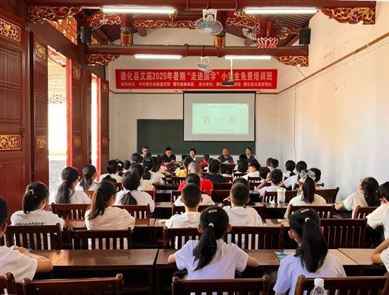 8月11日,德化縣“言行有禮” 文明禮儀行動之“讀詩習禮?少年養志”暑期國學培訓班在德化縣文廟開班。此次培訓旨在傳承中華優秀傳統文化,提升少年兒童的文明禮儀素養,讓“言行有禮”成為瓷都少年的鮮明標識。
