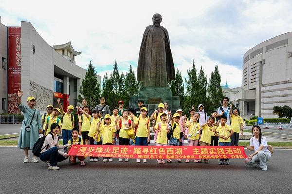 文明風8月15日訊 8月13日,由中共鼓樓區委文明辦、鼓樓區總工會、鼓樓區文體旅局、鼓西街道黨工委、辦事處聯合主辦的“漫步烽火足跡·踏尋紅色西湖”主題研學活動在西湖公園舉辦。50余名青少年及高校志愿者、社工人員沿著定制紅色路線探訪西湖公園愛國建筑,在文學課堂中感受紅色精神與本土文化的交融,通過“行走的課堂+沉浸的創作”模式,開啟了一場兼具歷史厚度與人文溫度的暑期實踐。