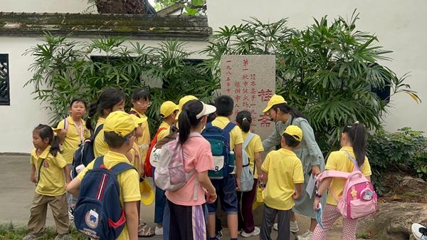 “同學們,眼前這座桂齋曾是林則徐晚年講學之地,也是近代福州愛國志士的精神燈塔。”上午9時,在張珊珊老師的帶領下,孩子們從西湖書院門出發,沿著“桂齋—林則徐禁煙亭—許世英·題聯擊楫碑—林則徐雕像—陳英金嵐紀念石”的紅色路線,開啟了一場跨越時空的對話。在桂齋前,張老師結合歷史影像與建筑細節,講述林則徐“茍利國家生死以”的愛國情懷;禁煙亭旁,孩子們通過角色扮演模擬“虎門銷煙”決策場景,理解禁毒斗爭的歷史意義;擊楫碑前,老師們以許世英題聯“擊楫中流”為引,解讀近代仁人志士救亡圖存的壯志。當隊伍行至林則徐雕像廣場時,全體學生齊誦《少年中國說》,鏗鏘之聲回蕩湖畔,將紅色精神具象化為少年的使命擔當。“這條路線像一根紅線,串起了福州的紅色記憶。”帶隊老師燦英表示,通過實地探訪與互動講解,孩子們不僅記住了建筑名稱,更理解了“愛國”二字背后的家國情懷。一名學生興奮地說:“原來英雄就站在我們身邊,我要把今天的故事講給更多人聽!”