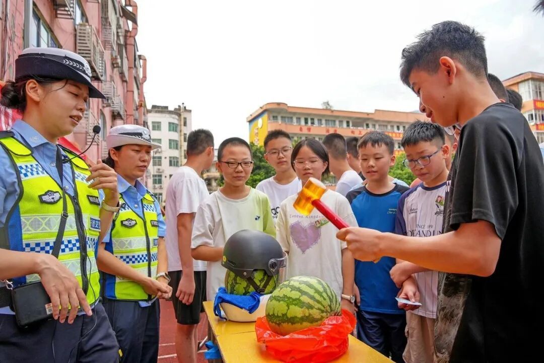 與此同時,在寧德市第十中學,一場別開生面的“開學第一課”暨交通安全宣講衛士聘用儀式正在舉行。民警結合典型案例視頻,圍繞學生日常出行場景,詳細講解了安全過馬路、識別車輛盲區、正確佩戴頭盔等重要交通規則。同學們認真聆聽,積極互動,在模擬體驗中加深對交通文明的理解。