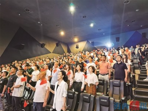 200多名市民在完美世界影城中華城店集中觀看紀(jì)念大會(huì)直播。記者 柯小嬌 攝
