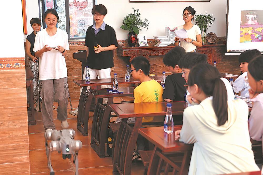“今年,我們引入了‘像素復旦’和機器人課程,希望科技元素能拓寬孩子們的視野。”本次支教團隊的領隊,復旦大學中文系的許芮碩介紹,安溪以鐵觀音聞名,擁有得天獨厚的生態環境,夏令營圍繞安溪特色設計了“生態+AI”主題課程,探討生態保護與科技發展的關系。