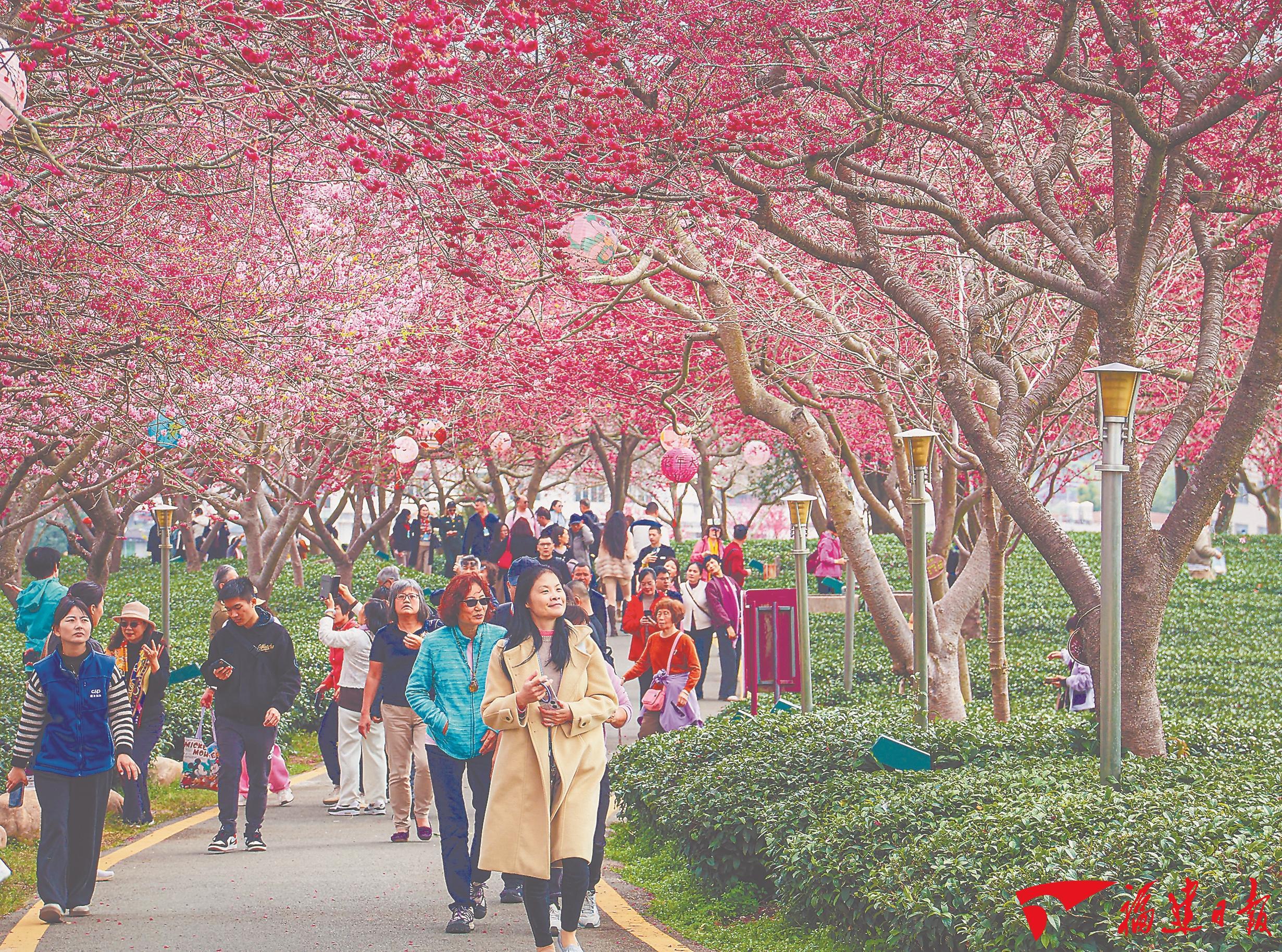 漳平永福杜鵑花盛開,市民正在賞花。 章宸睿 攝