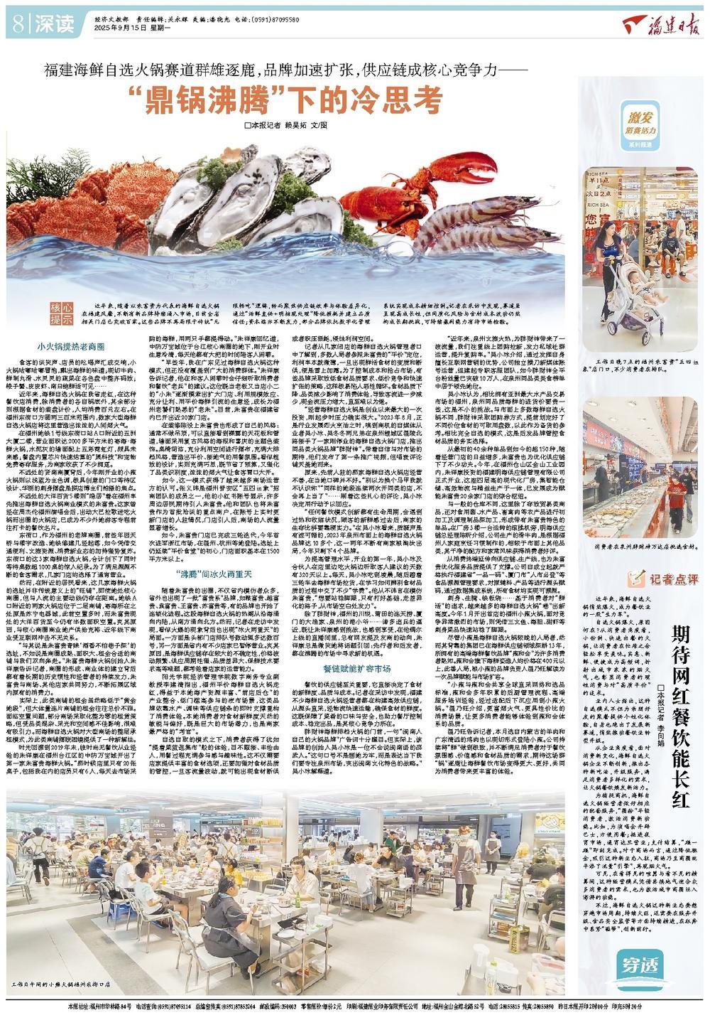 近年來,隨著以朱富貴為代表的海鮮自選火鍋在福建風(fēng)靡,不斷有新品牌持續(xù)涌入市場(chǎng),目前全省相關(guān)門店已突破百家。這些品牌不再局限于傳統(tǒng)“無限暢吃”邏輯,轉(zhuǎn)而聚焦供應(yīng)鏈效率與體驗(yàn)差異化,通過“活鮮直供+明檔現(xiàn)處理”降低損耗并建立品質(zhì)信任;資本端亦不斷發(fā)力,部分品牌依托數(shù)字化管理系統(tǒng)實(shí)現(xiàn)成本精細(xì)控制。記者在采訪中發(fā)現(xiàn),賽道雖呈現(xiàn)高成長(zhǎng)性,但同質(zhì)化風(fēng)險(xiǎn)與食材成本波動(dòng)仍然構(gòu)成長(zhǎng)期挑戰(zhàn),可持續(xù)盈利能力有待市場(chǎng)檢驗(yàn)。