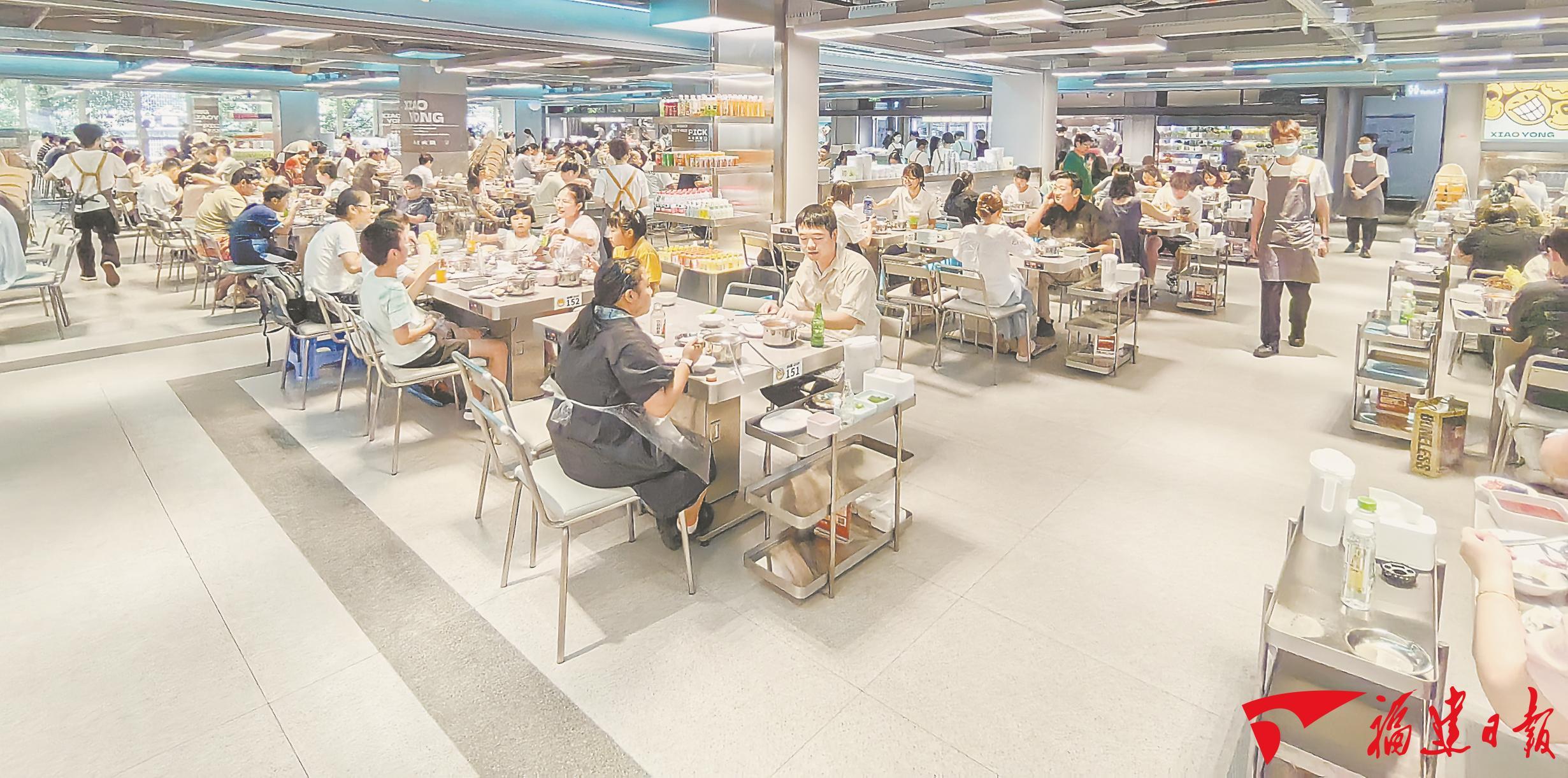 不遠(yuǎn)處的大洋百貨5樓則“隱居”著在福州率先推出海鮮自選火鍋商業(yè)模式的朱富貴。這家曾經(jīng)在周杰倫福州演唱會(huì)后,出動(dòng)大巴拉歌迷吃火鍋而出圈的火鍋店,已成為不少外地游客專程前往打卡的餐飲名片。