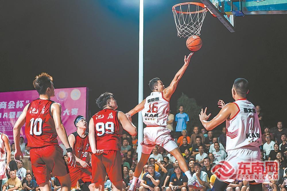 夜幕下的石獅市寶蓋鎮鄭厝燈光籃球場,燈火如晝、人聲鼎沸。