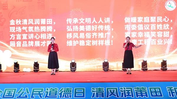 當晚義演節目精彩紛呈。朗誦《道德之光,檢徽閃耀》、莆仙贊句《廂音齊贊家風暖》、小品《嚇豹說聘金》等節目輪番上演,各有特色又接地氣,傳遞家風文明,倡導移風易俗。現場還設置了食品安全、交通安全、防詐騙反傳銷、移風易俗、科普知識等文明實踐文明宣傳攤位,民間志愿服務組織踴躍參與,現場提供服務,吸引大量市民前來參與。