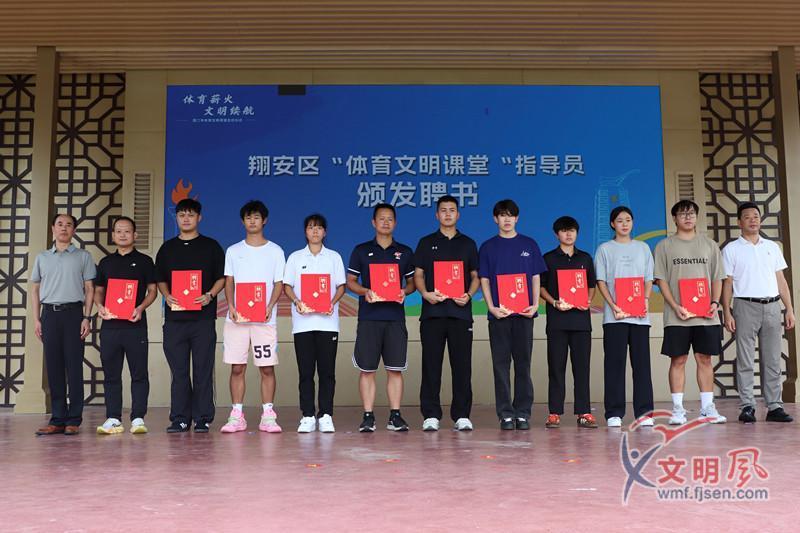 活動現場還為首批10名體育文明課堂指導員頒發聘書,并為翔安區“體育文明課堂”文明實踐服務隊、體育文明網絡觀察隊授旗,以及為“體育文明課堂教學點”授牌,標志著廈門市體育文明課堂試點工作正式落地。