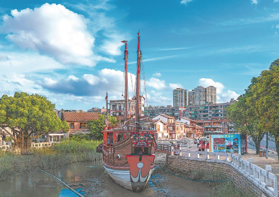 位于蘿苜田街區端明陡門前的“興涵號”福船 林震揚 攝