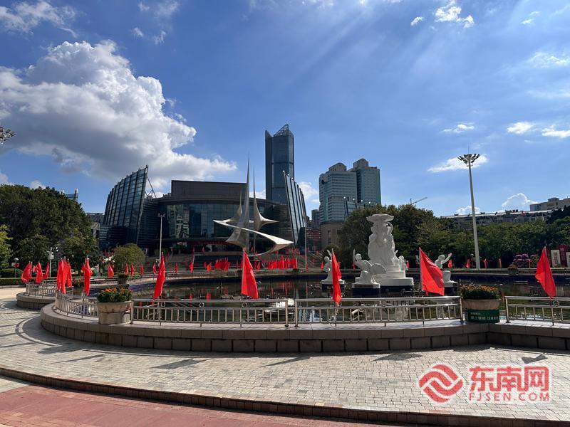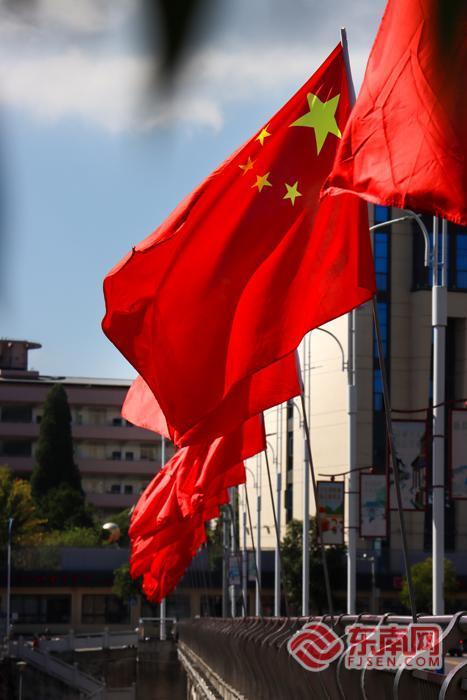 國慶節將至,福建各地裝扮一新!五星紅旗在大街小巷迎風飄揚,喜迎佳節的造景、戶外大屏增添了別樣氛圍,滿目皆是喜慶的“中國紅”。