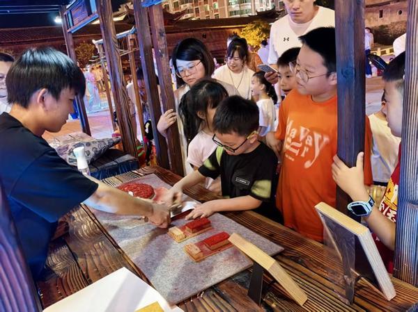 各互動體驗區成為全場焦點。在雕版印刷技藝區,家長與孩子共同體驗印刷的樂趣;在芷溪花燈技藝區,游客學習了花燈的制作工藝;閩西客家木偶戲的互動教學環節,更是引得男女老少踴躍參與。這種零距離、趣味性的互動模式,極大地激發了群眾的參與熱情,據統計,活動累計吸引超過2萬余人次參與,現場氣氛熱烈,歡聲笑語不斷。
