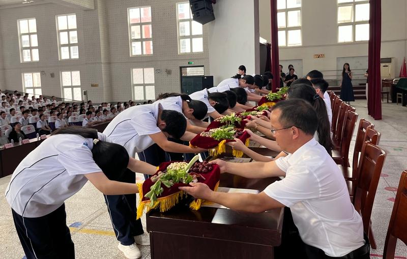 “朱子敬師禮”活動(dòng),學(xué)生向老師呈送獻(xiàn)上“釋菜六禮”。 魏詩婷 攝