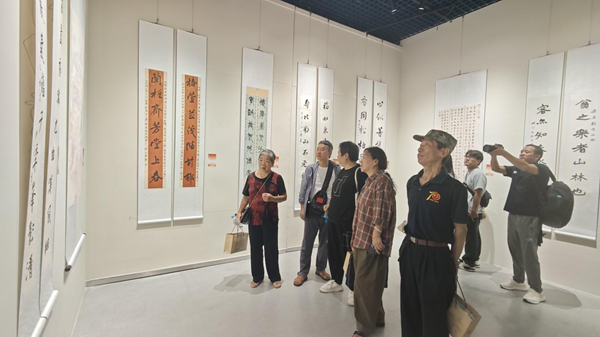 長者們一同參觀“銀杏百福”書畫展。鼓西街道 供圖