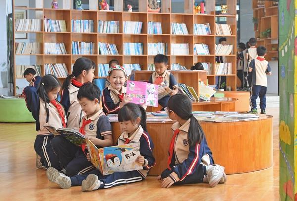 2025年10月21日,在福建師范大學(xué)泉港實(shí)驗(yàn)小學(xué)圖書館閱讀區(qū),同學(xué)們沉浸在閱讀的快樂中。泉港區(qū)委宣傳部 供圖