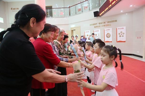 孩子們向老人們送上鮮花。倉(cāng)山區(qū)融媒體中心 供圖