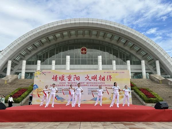 活動在民樂演奏《暖山》悠揚的樂聲中拉開帷幕,隨后,手勢舞《孝為先》以輕盈舞姿勾勒“百善孝為先”的傳統內核,讓敬老理念可視化;歌曲《萱草花》用溫柔歌聲訴說牽掛,喚起現場觀眾對長輩的感恩之情;柔力球表演《我祝祖國三杯酒》、太極功夫扇表演《扇韻展新風》則將健康生活理念與傳統文化韻味相結合,展現長者風采與時代活力。緊接著,朗誦《文明榕城,情暖重陽》、福州語歌曲《礱礱榖,榖礱礱》、移風易俗快板《厚養薄葬新篇章》用多樣的表演形式,傳遞文明理念,倡樹時代新風;最后,舞蹈《醉花間》、歌曲《萬事如意》,寄托了對長輩的祝福和對美好生活的向往。