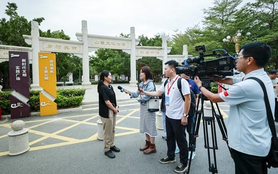 主題采訪啟動儀式現(xiàn)場,媒體代表發(fā)言。泉州文明網(wǎng) 供圖