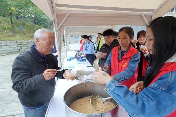 在“禮韻傳承”環節,孩子們將親手制作的賀卡送給長輩,長輩則回贈3D環保手工作品,傳遞著尊老愛幼的美好品德。最動人的場景莫過于現場送“?!敝喹h節。領導嘉賓及志愿者們將熬煮好的熱粥遞到長者手中,一碗碗溫熱的粥品承載著“福壽綿長”的美好祝愿,讓敬老愛老的真情實意浸潤心田。