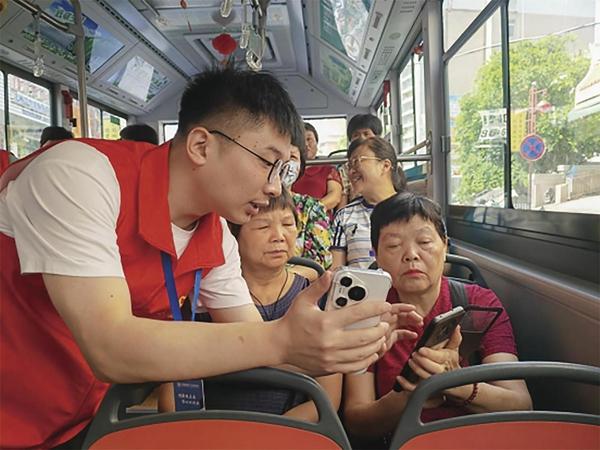 志愿者教老人使用掌上公交