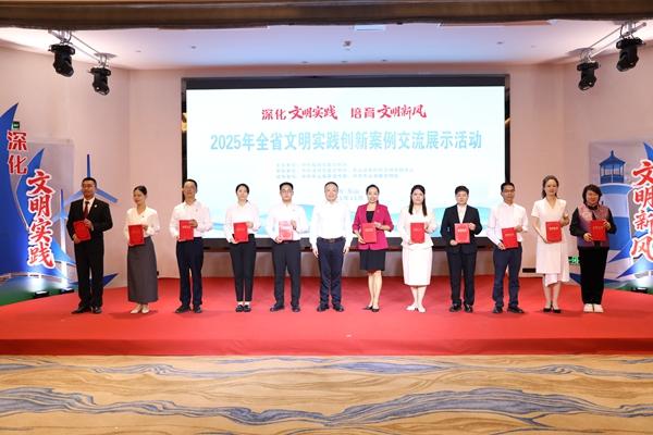 省委文明辦和市委文明辦有關(guān)領(lǐng)導(dǎo)為文明實(shí)踐創(chuàng)新案例實(shí)施單位頒發(fā)紀(jì)念證書(shū)。