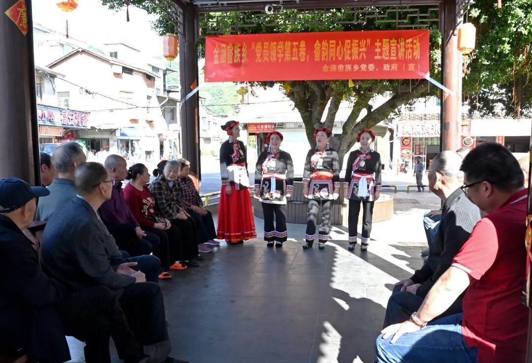 活動在國家級非遺畬族民歌《百鳥朝鳳》中拉開序幕,歌聲傳遞出畬鄉人民對美好生活的向往,展現民族文化的魅力與生機。金涵村黨支部書記雷官永圍繞《習近平談治國理政》第五卷作宣講,結合本鄉實際,用生動語言闡釋中國式現代化對民族地區發展的指導意義。
