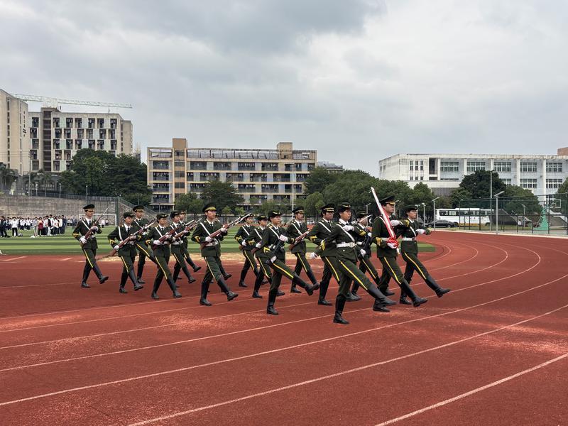 福州旅游職業中專學校的學生在國旗護衛隊訓練中學會團隊精神。