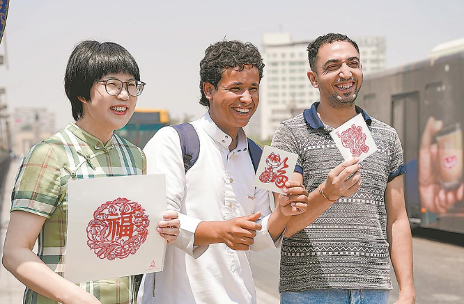 今年6月,周冬梅帶著浦城剪紙到埃及參加文化交流活動。 (受訪者供圖)