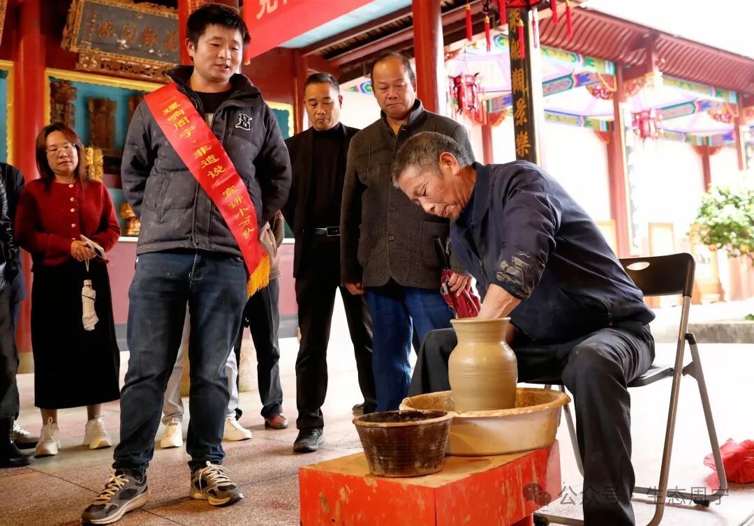 近日,在寧德周寧浦源鎮浦源村鄭氏宗祠內,一場別開生面的活動正在進行。萌源制硋世家的肖家漲和肖永燦父子倆伏在拉坯機前,雙手靈巧地塑造著硋器,吸引了眾多游客、村民駐足觀看。