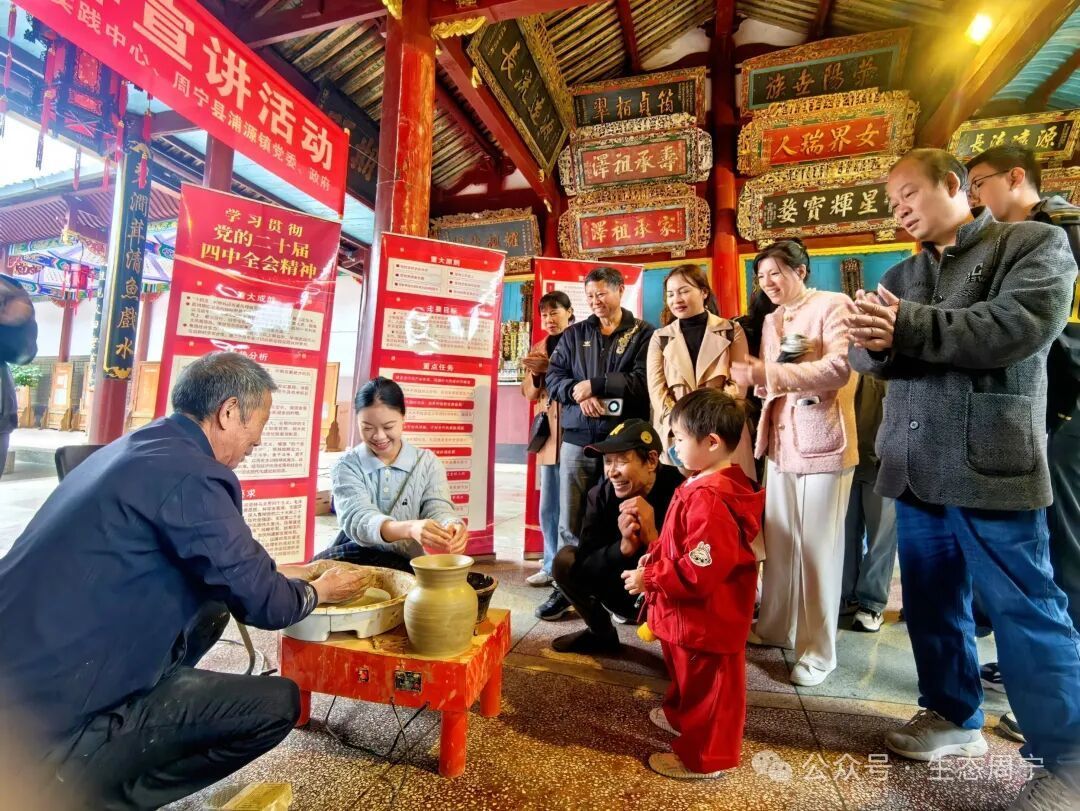 隨著拉坯機的轉動,肖永燦結合親身經歷,向圍觀的群眾宣講黨的二十屆四中全會精神。“全會提出要‘優化提升傳統產業’‘激發全民族文化創新創造活力’,這正是我們非遺代表性傳承人的底氣所在!”他激動地說。
