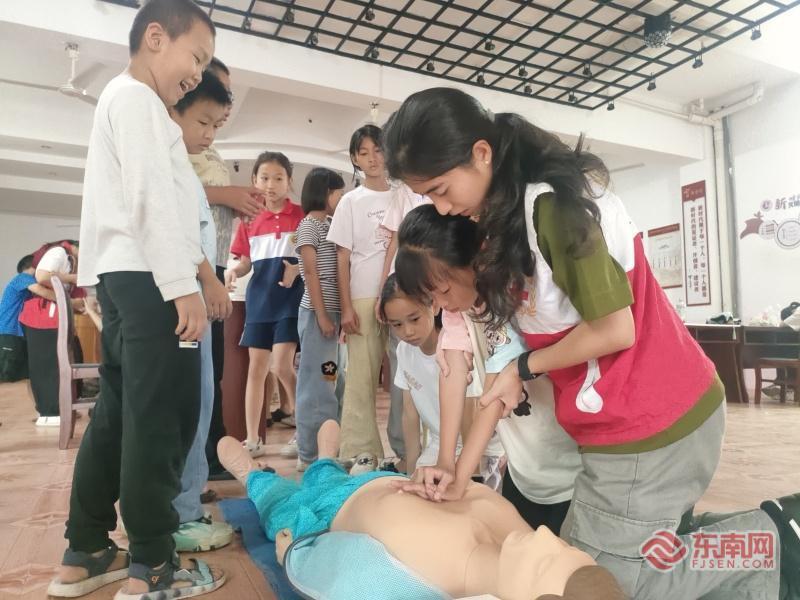 廈門醫學院紅十字會學生分會、救護技能宣教志愿服務隊走進李林村新時代文明實踐站,以“理論+實操”相結合的方式,為孩子們演示心肺復蘇(CPR)、包扎和海姆立克急救法,把專業技能轉化為青少年能聽懂、會操作的實用知識,助力提升其自救互救能力。