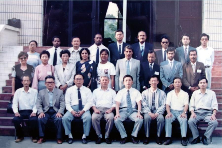 1995年,東高地省學員瓦伊(后排左四)來福建參加菌草技術培訓。(受訪者供圖)