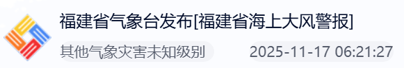 今日上午6時21分,福建省氣象臺發布海上大風警報。今天,東北風,全省沿海6-7級陣風8級轉7-9級陣風9-11級,臺灣海峽6-7級陣風8級轉8-10級陣風10-12級。