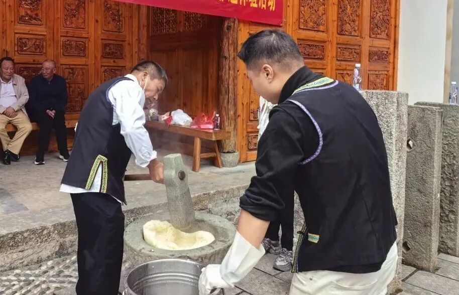 村民們圍在一起舂糍粑,傳遞“勤儉持家、鄰里和睦”的理念。寧德文明網(wǎng)供圖