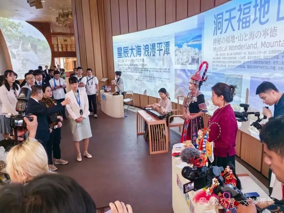 2025年日本大阪世博會中國館福建活動周現(xiàn)場,雷美鳳正在推介畬族文化。寧德文明網(wǎng)供圖