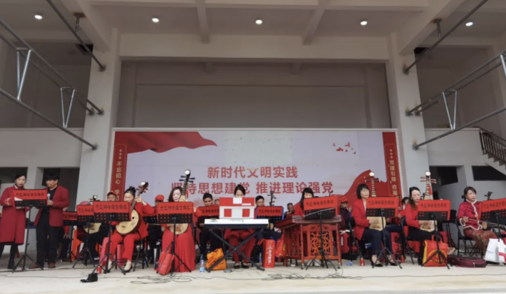 活動在歡快的文藝匯演中拉開帷幕。現場開展了黨的二十屆四中全會精神專題宣講,宣講員用通俗易懂的語言、鮮活生動的例子進行解讀,內容既貼合政策導向,又緊扣群眾生活實際,讓大家深刻理解領會黨的新政策、新理論。方言小品《移風易俗》,圍繞婚俗改革主題,以通俗易懂的本地語言和貼近生活的故事情節,生動形象地批判了高價彩禮、大操大辦等陳規陋習,表演以寓教于樂的方式,引導廣大農民群眾樹立正確的家庭觀、婚嫁觀,有效推動文明、簡約、適度的婚俗觀念入腦入心。韻味悠長的“十音八樂”演奏登場,鄉村文化志愿者用嫻熟的技藝演奏了經典曲目《財丁貴》,展現了非物質文化遺產的獨特魅力和莆仙文化的深厚底蘊,傳遞了濃郁的鄉音鄉情,讓古老的鄉村書院雅樂奏響新時代和諧動人樂章。緊接著歌曲獨唱《相遇》、歌伴舞、移風易俗快板三句半等輪番上演,現場笑聲連連、掌聲不斷。