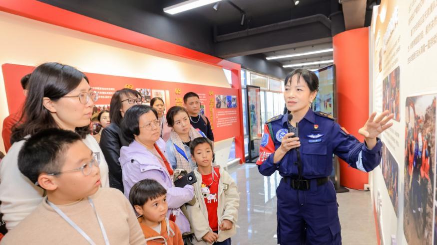 藍(lán)天救援隊(duì)隊(duì)長陳素珍與市民群眾在活動中互動(資料圖)。新華網(wǎng)發(fā)(思明區(qū)委文明辦供圖)