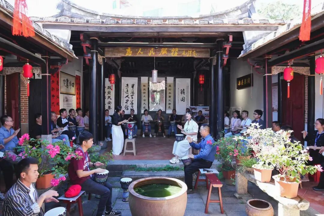 文明風11月24日訊 近日,在廈門市同安區大同街道田洋村,一陣陣歡快的鼓點聲從田洋書院的屋檐下飛揚而出。伴隨著背景音樂,村民們圍坐在一起學習非洲鼓。