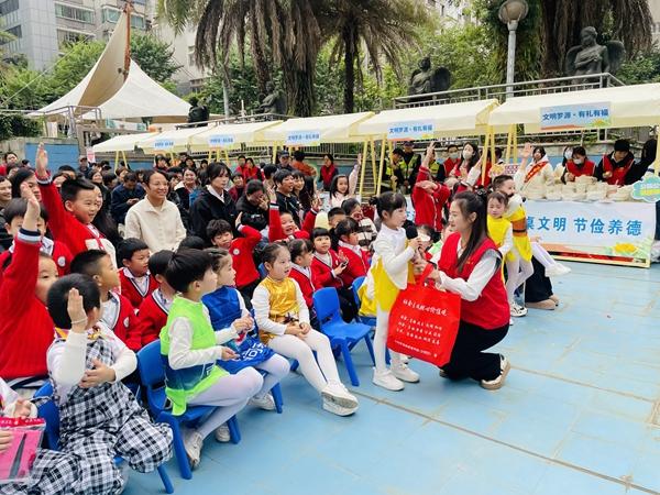 活動在《“明禮福建人”文明風尚倡議書》的宣讀聲中拉開帷幕,文明實踐志愿者向居民發出“光盤行動、公筷公勺、合理點餐”倡議;餐飲商戶代表現場宣讀《文明用餐服務承諾書》,承諾主動提供公筷公勺、引導合理點餐、優化打包服務,以行業擔當助力文明餐桌建設。