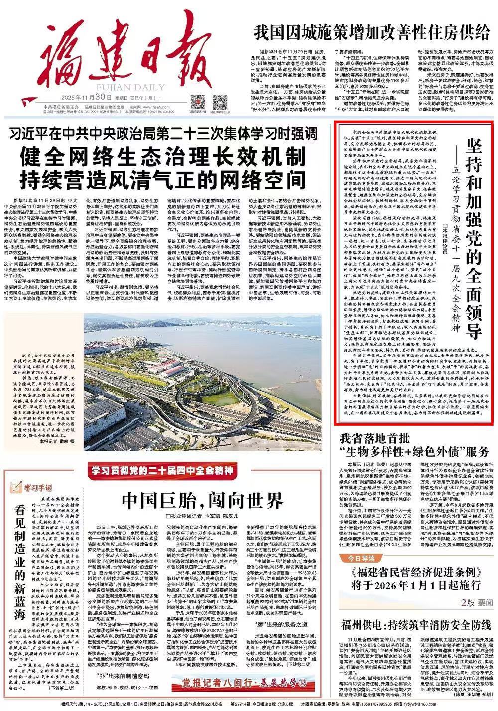 強化思想引領。思想是行動的先導,福建是習近平新時代中國特色社會主義思想的重要孕育地和實踐地,這是福建做好工作、加快發展最為重大而獨特的優勢。我們要持續用黨的創新理論統一思想、統一意志、統一行動,完善推動習近平總書記重要講話重要指示批示精神和黨中央決策部署落實機制,對標對表將黨的主張和重大決策部署轉化為推動福建經濟社會發展的實際行動,確保上下貫通、執行有力。要深刻領悟“兩個確立”的決定性意義,增強“四個意識”、堅定“四個自信”、做到“兩個維護”,始終在思想上政治上行動上同以習近平同志為核心的黨中央保持高度一致,為實現“十五五”規劃團結奮斗。
