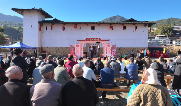 作為福建省委省政府為民辦實(shí)事項(xiàng)目,本次演出整合省市縣鄉(xiāng)村五級文化力量,節(jié)目內(nèi)容兼具專業(yè)性與鄉(xiāng)土味。舞蹈《山城·福韻》《東方美人茶》舞出了濃郁的地域風(fēng)情,《壯志雄心》《燈火里的中國》等歌曲則唱響了時(shí)代主旋律。尤為引人注目的是來自本地民俗隊(duì)伍和學(xué)生團(tuán)體的演出,太華鎮(zhèn)湯泉小將的儺韻雄獅表演氣勢雄渾;太華鎮(zhèn)中心小學(xué)的“天地龍鱗”大鼓擂響了青春強(qiáng)音;小華村村民唐富娥演唱的山歌《婚嫁新風(fēng)進(jìn)萬家 移風(fēng)易俗靠大家》,更是用最“接地氣”的方式,唱響了移風(fēng)易俗的新風(fēng)尚。