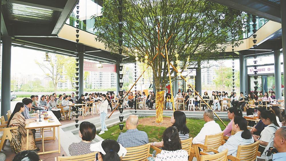 花海公益書吧開展的閱讀分享會吸引眾多市民參與。 蔡沁妍 攝