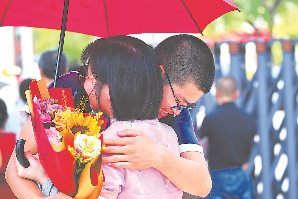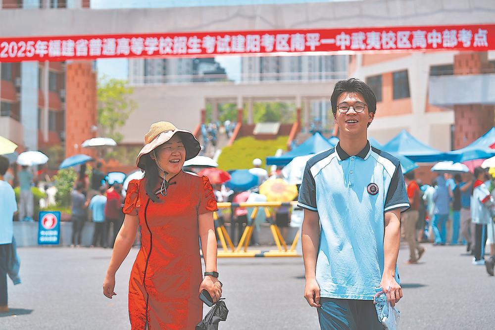 7日上午,在南平一中武夷校區考點,伴著首考結束的鈴聲,考生走出考場。吳大灼 王玥明 攝