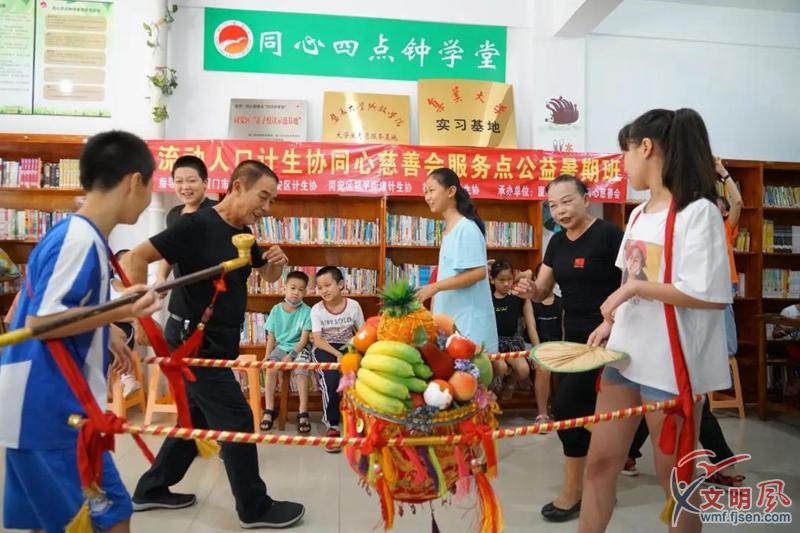 文明風7月22日訊(通訊員 林文足)你走三步,我走三步,詼諧的表情,滑稽的動作,逗得大家樂呵呵。日前,為了讓孩子們更好地認識同安非遺文化,廈門市同心慈善會邀請到了同安金秋藝術團志愿者參與公益夏令營,來為孩子們講解同安非遺文化“車鼓弄”,通過講解車鼓弄的歷史來源以及帶動小朋友們表演,讓他們感受同安非遺傳統民俗藝術的魅力。