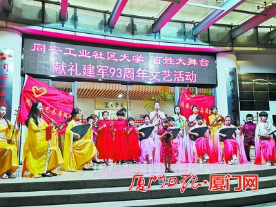 同安區文聯主席、同安工業社區大學校長吳永紅介紹,隨著文藝志愿服務的日趨成熟,同安工業社區大學百姓大舞臺的文藝演出已成了每周六的“固定動作”。“不僅有同安區文聯各協會的專業藝術工作者參與演出,工業集中區內的企業員工和居民也會主動報名。”吳永紅說。