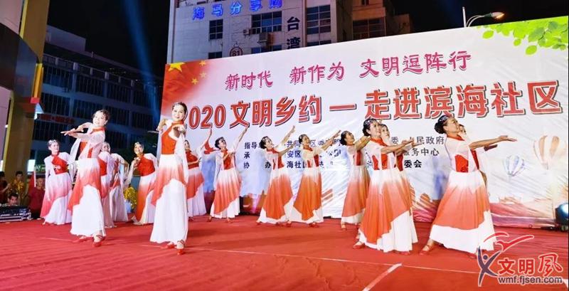 文明風11月5日訊(通訊員 文潔 鄒玒 吳婷婷)歡快的笑臉,蹦跳的腳步,飄揚的紅綢,換來居民們熱情的掌聲。1日晚,在廈門市同安區委文明辦、西柯鎮黨委政府的指導下,同安區西柯鎮文化服務中心攜手濱海社區、同安金秋藝術團在濱海社區安居樂享廣場舉辦“新時代、新作為、文明逗陣行,2020文明鄉約·一起走進濱海”新時代文明實踐活動。