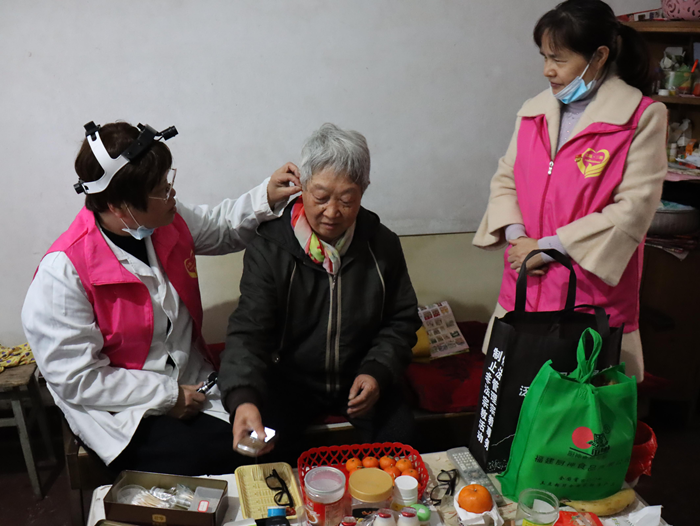 2021年3月5日,“近鄰·愛心敲敲門”巾幗志愿者上門為三元區東霞社區老人做聽力檢查,更換助聽器。